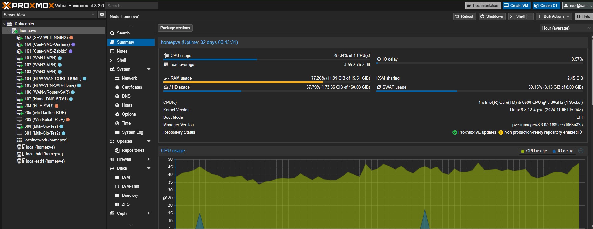 I have established and managed a robust home lab environment utilizing Proxmox Virtual Environment, a leading open-source platform for virtualization. Through Proxmox, I have gained extensive hands-on experience in managing virtual machines (VMs) and containers (LXC), configuring storage, setting up virtual networks, and understanding high availability concepts. This implementation allows me to experiment with various server and network technologies in a flexible and controlled environment, deepening my understanding of IT infrastructure and cloud computing.